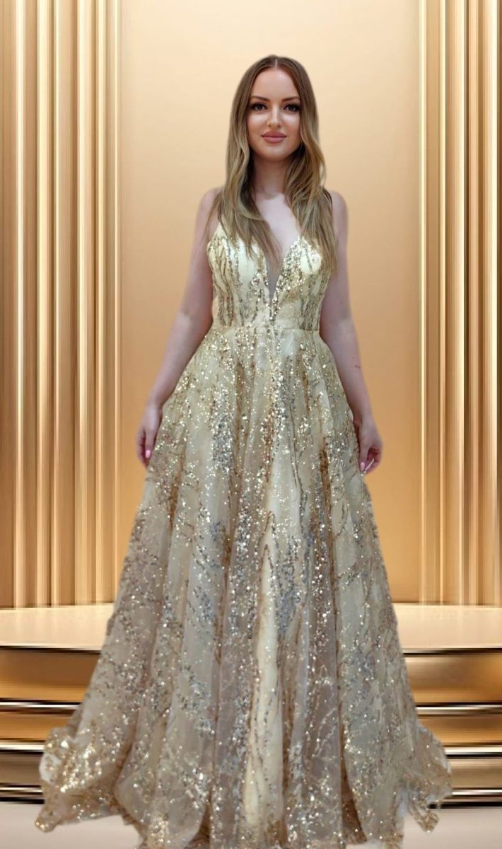 Създадена за жени, които обичат да сияят – тази приказна рокля в златисто ще ви превърне в истинска звезда на всяко събитие.